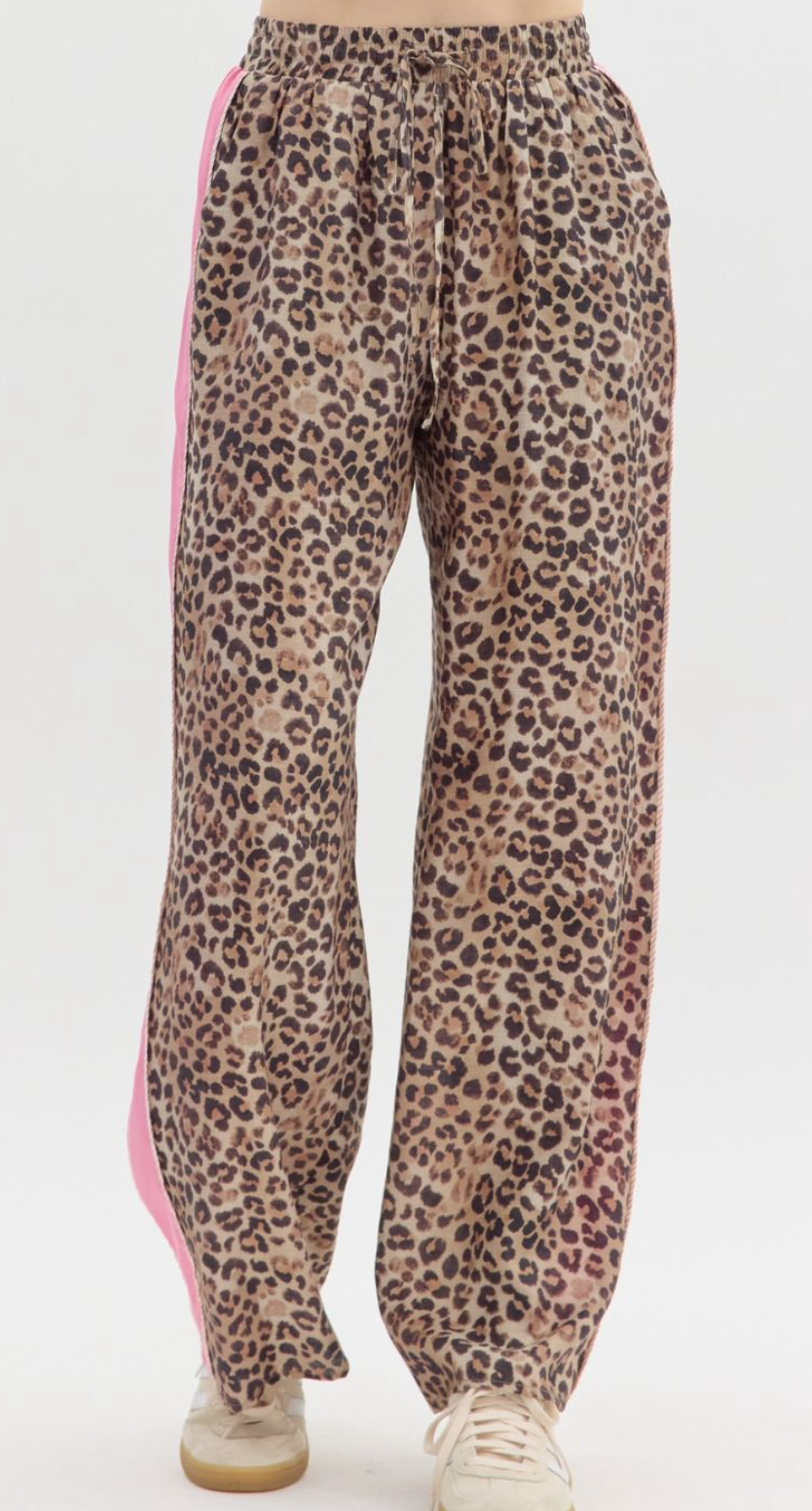 Turn heads in this bold yet feminine two-piece pant set, where fierce leopard print meets playful pink. Designed to elevate your everyday style, this chic ensemble blends the elegance of boutique fashion with all-day comfort.